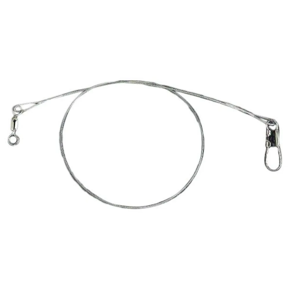 Braided steel leader. Barrel swivel at one end and safety snap at the other.