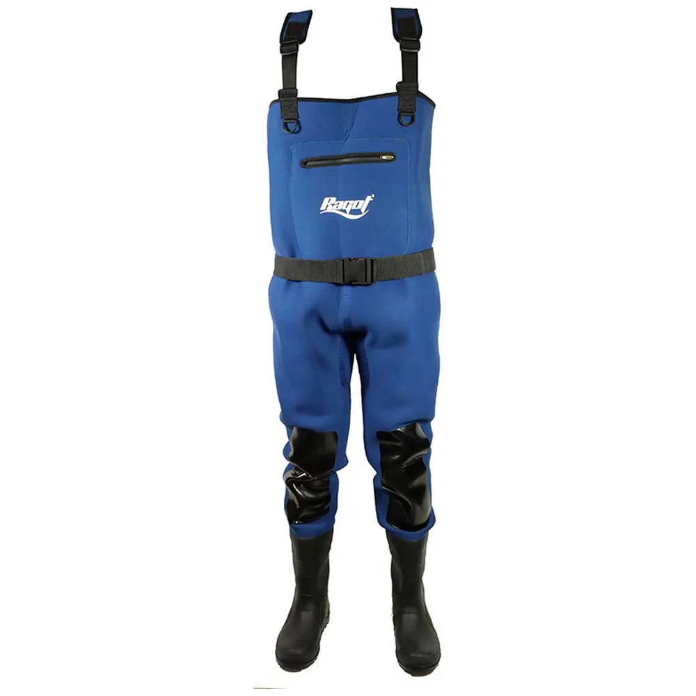 The high-end RAGOT with a high quality neoprene with a thickness of 4mm that can withstand the cold. This waders also offers a more advanced manufacturing process with the different parts assembled by thermos-welding on all seams, more comfortable and more durable waterproofing over time. the inner neoprene is integral and goes to the end of each boot. This product is equipped with a zip ventral pocket to secure the keys or papers. Adjustable straps very comfortable and equipped with 2 rings to attach accessories. Comes with a clip detachable belt. Finally, the new protections placed on the knees make it possible to extend the life of these waders, by strengthening the areas subjected to friction, without weighing it down and without hindering the freedom of movement at the level of the joint.