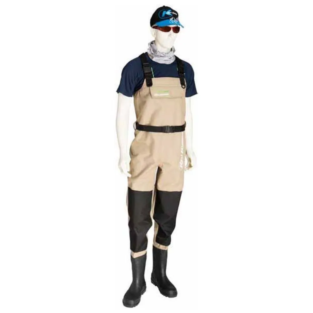 eliability. Rubber boots provides excellent traction on slick, rocky streambeds for all-day comfort Chest-High has a drawstring top, removable suspender system,spacious internal pocket for valuables and fly boxes and a wading belt for safety.