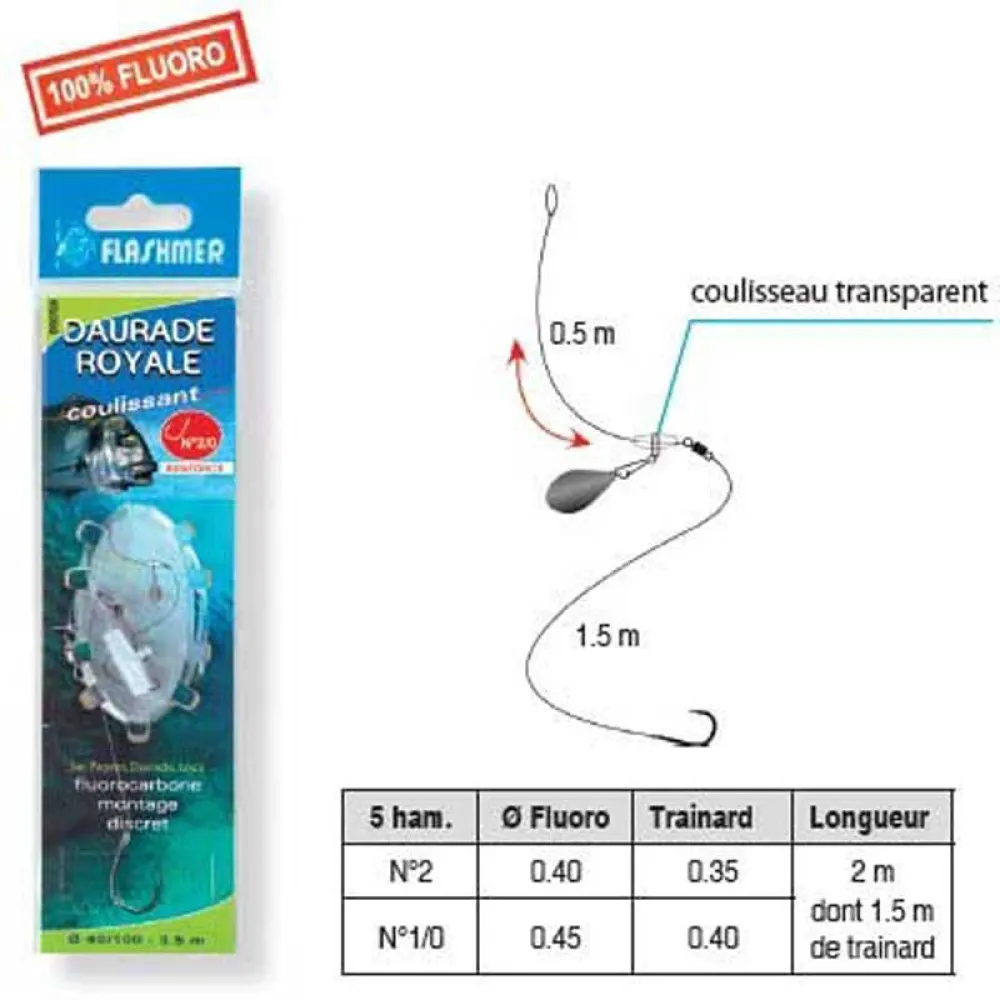 The Gilthead Sea Bream Is A Legendary Suspicious Fish. This Quibbling Sparid Releasing The Bait At The Slightest Suspicious Tension, The Sliding Assembly Is Particularly Indicated.For Maximum Discretion, This Assembly Is Made Of Fluorocarbon Whose Refractive Index Is Very Close To Water. The High Abrasion Resistance Of This Material Will Also Be An Advantage Against The Powerful Jaws Of A Sea Bream. A Small Transparent Slide Very Discreet And Offering A Perfect Sliding Will Allow The Grip Of The Lead Whose Weight Will Be Chosen In Relation To The Depth And The Conditions. This Rig Is Equipped With A Round Shaped Paddle Hook With A Short Shank Perfectly Suited To The Mouth Of This Sparidae And To The Baiting Of Fragile Baits. Strong Iron To Resist The Powerful Jaw Of The Sea Bream, It Is Also A Formidable Spiciness.Compared To Previous Daurade Royale Coulissants Rigs , These Have Been Reinforced For Fishing In Rocky Or Crowded Areas And In Order To Target The Most Beautiful Specimens. They Are Also Shorter To Avoid Tangling Problems In The Presence Of Currents Or Waves.