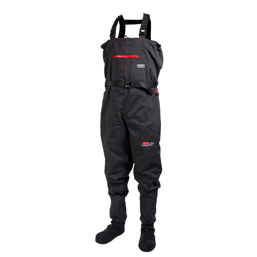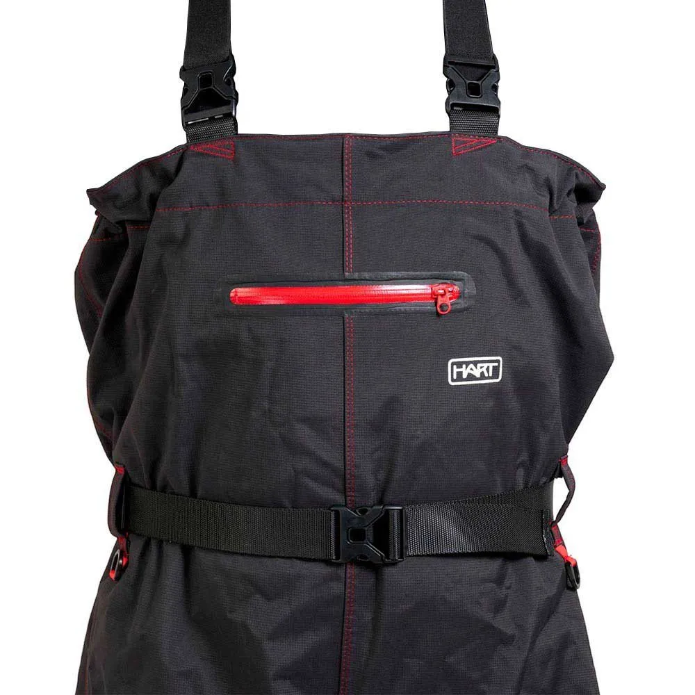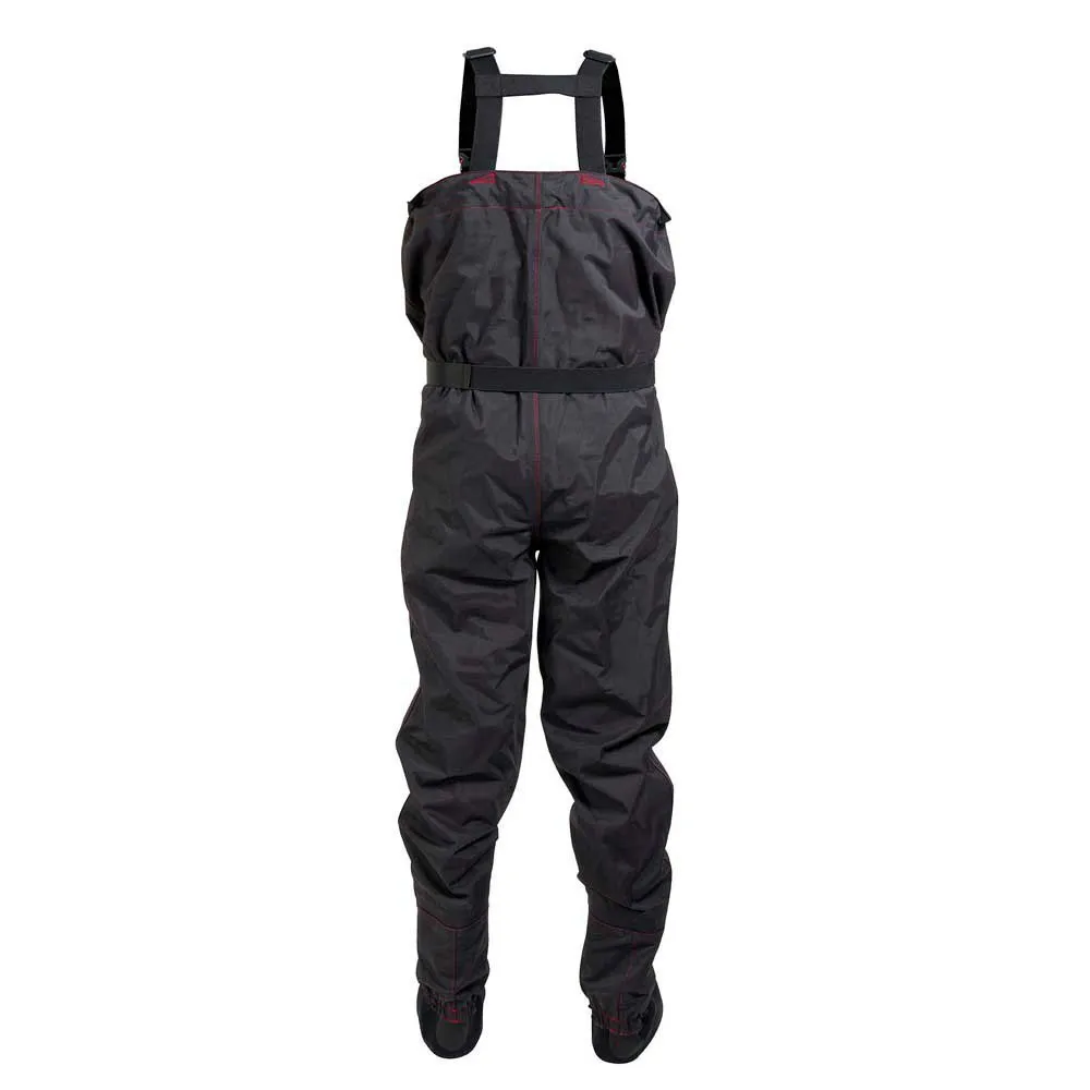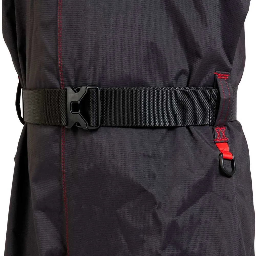 Reinforced wader for spinning from rocks, beaches, duck, or those places where we need an ultra-resistant fabric. Reinforced super-technical rip-stop fabric. Chest pocket with water-repellent YKK zipper (ATTENTION: It is not a waterproof pocket). Inside pocket with zipper closure. Adjustable elastic straps for a more comfortable fit on the shoulders. By combining the male/female hooks on the chest, it allows the wader to be folded to the waist and fastened by turning said straps into a belt. Adjustable belt with guide of thick reinforced loops. Rings to hang accessories and tools. Reinforced rip-stop fabric gaiters with elasticated hem for easier entry and boot attachment clip. High-density neoprene socks with rubberized heel and tendon reinforcement to prevent boot wear. Transport bag.