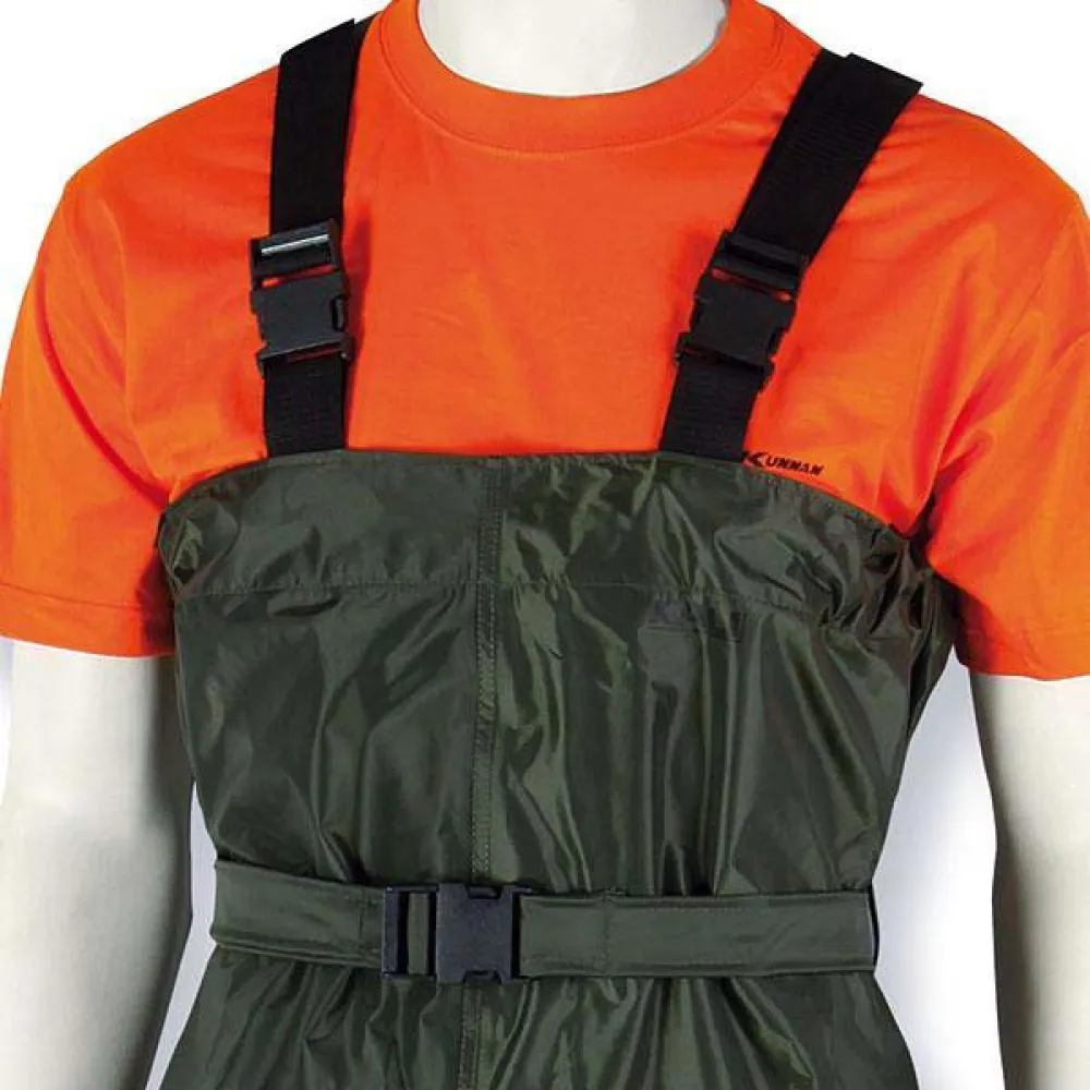 – Nylon PVC Chest wader with integrated PVC boot.
