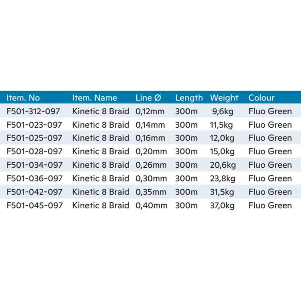 The 8-braid is Kinetics’ most advanced braided fishing line to date. Kinetic 8-braid is precision crafted from 8 woven fibers, resulting in unparalleled strength and a consistent profile that makes casting smoother than ever. It has virtually no stretch, so you´ll feel every touch.