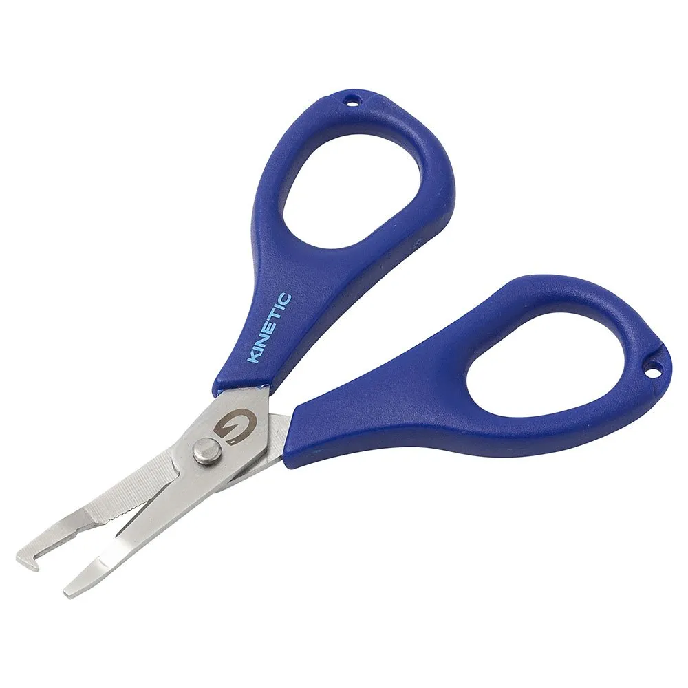 Kinetic Multi Scissors easily and safely cut braid and mono lines. The oversized finger holes feature nonslip grips for precise, comfortable handling. A must-have in every angler´s kit.