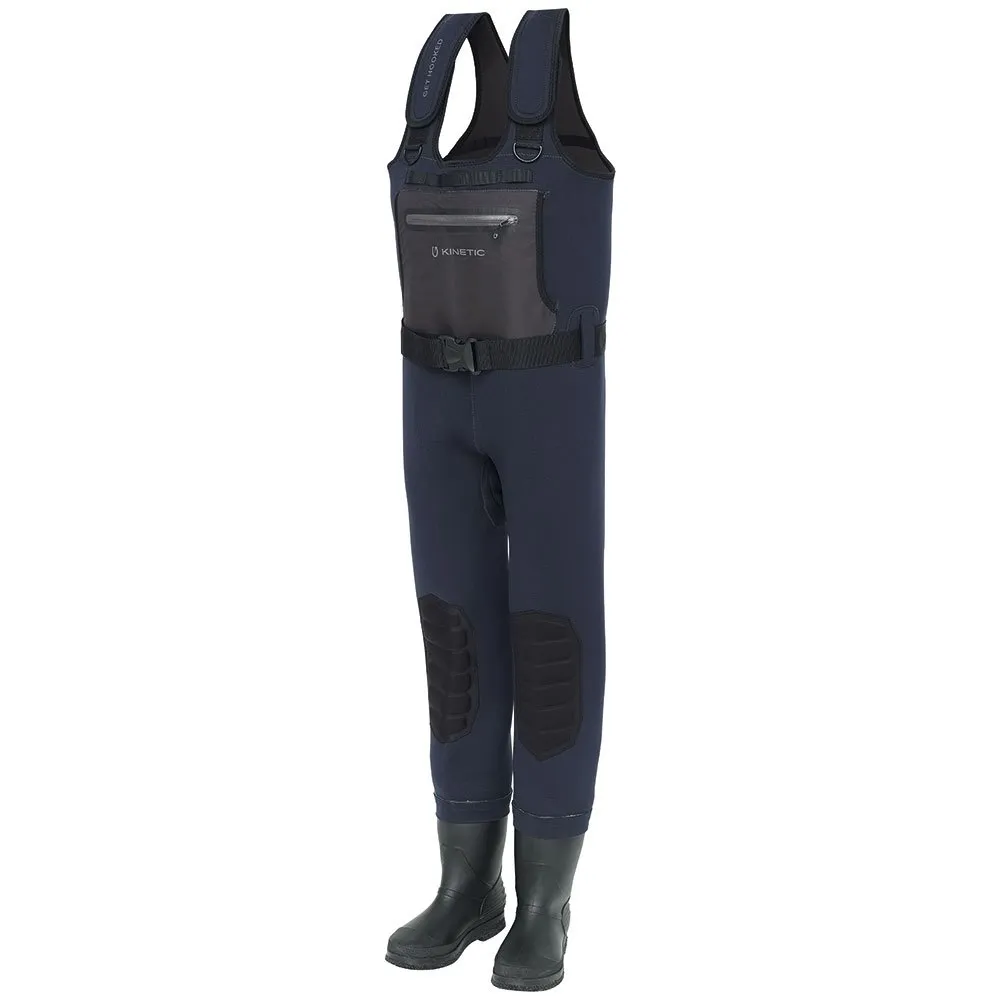 Stay Warm And Dry On The Water With The Kinetic Neoguard Bootfoot Waders. Tough 4.5mm Neoprene Seals Out Water And Offers Increased Puncture Resistance Over Thinner Materials. Reinforced Knees Stand Up To Years Of Heavy Use. Inside Seams Are Stitched, Taped, And Glued To Ensure You Stay Bone Dry. Proven Design Also Features A Spacious Inside Chest Pocket With Zipper And A Front Handwarmer Pocket Keeps Your Hands Warm, While 2 D-Rings Allow You To Attach A Variety Of Accessories. Adjustable Velcro Shoulder Straps Offer A Custom Fit.