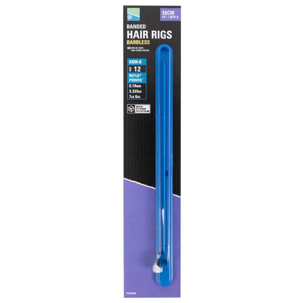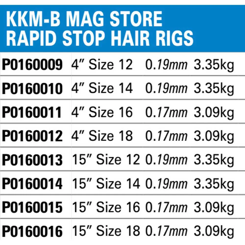 The fully loaded rig stick can be taken straight out of the packaging and placed into the correct sized Mag Store System Box.Each pack contains 8 hand tied rigs which are stored on the rig stick, hook size along with line diameter and breaking strain can be easily identified by the attached sticker.KKM-B hooks are used on each rig, tied to the tried and tested Reflo Power line.