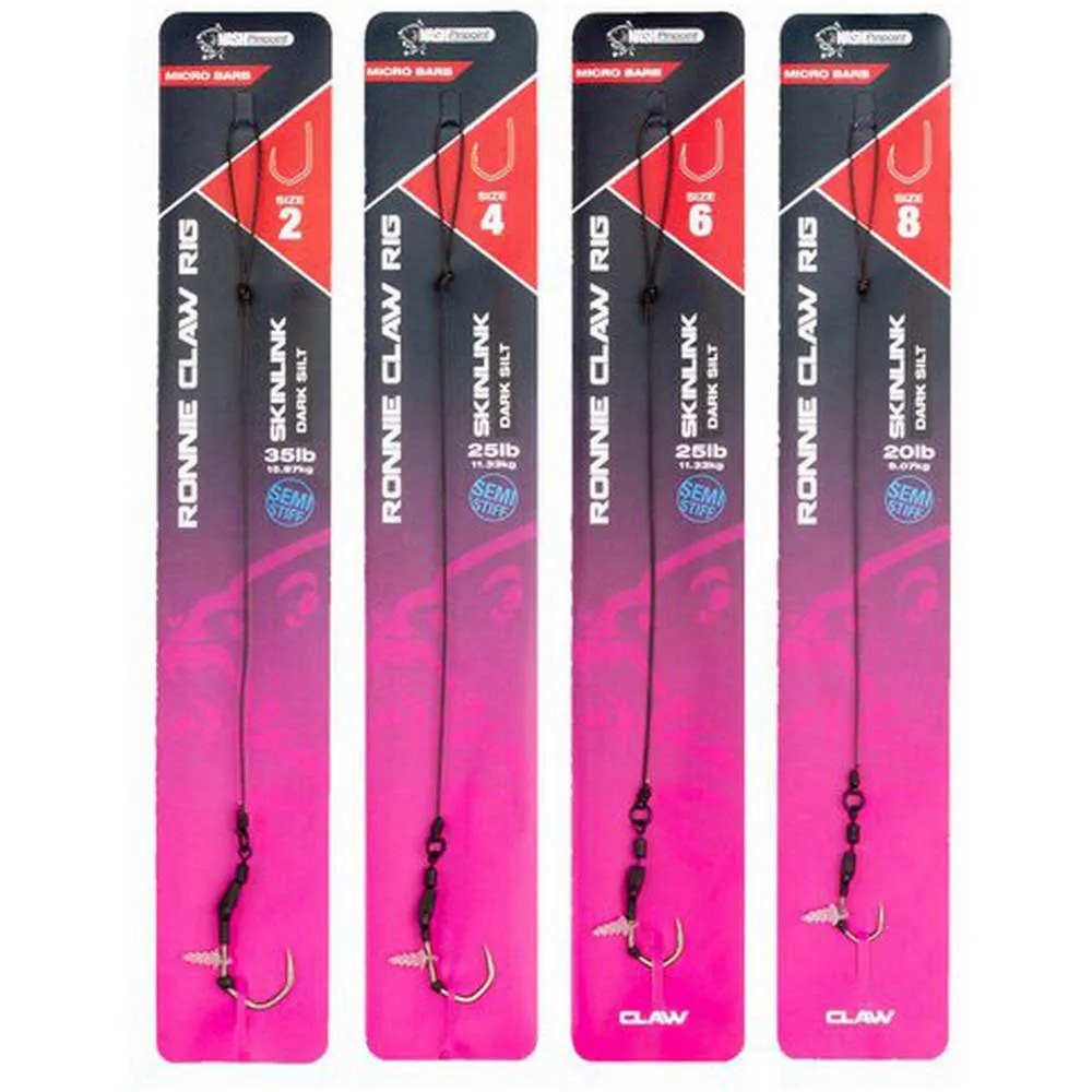 The Nash Pinpoint twist on the carp world’s most effective pop up rig the Ronnie Claw uses the wide gape and angled bend of the Claw hook for unbeatable hooking and rock solid hook holds. Finished with a bait screw for instant bait mounting without needles and stops and a figure of eight loop knot for fast link replacement without knotting.