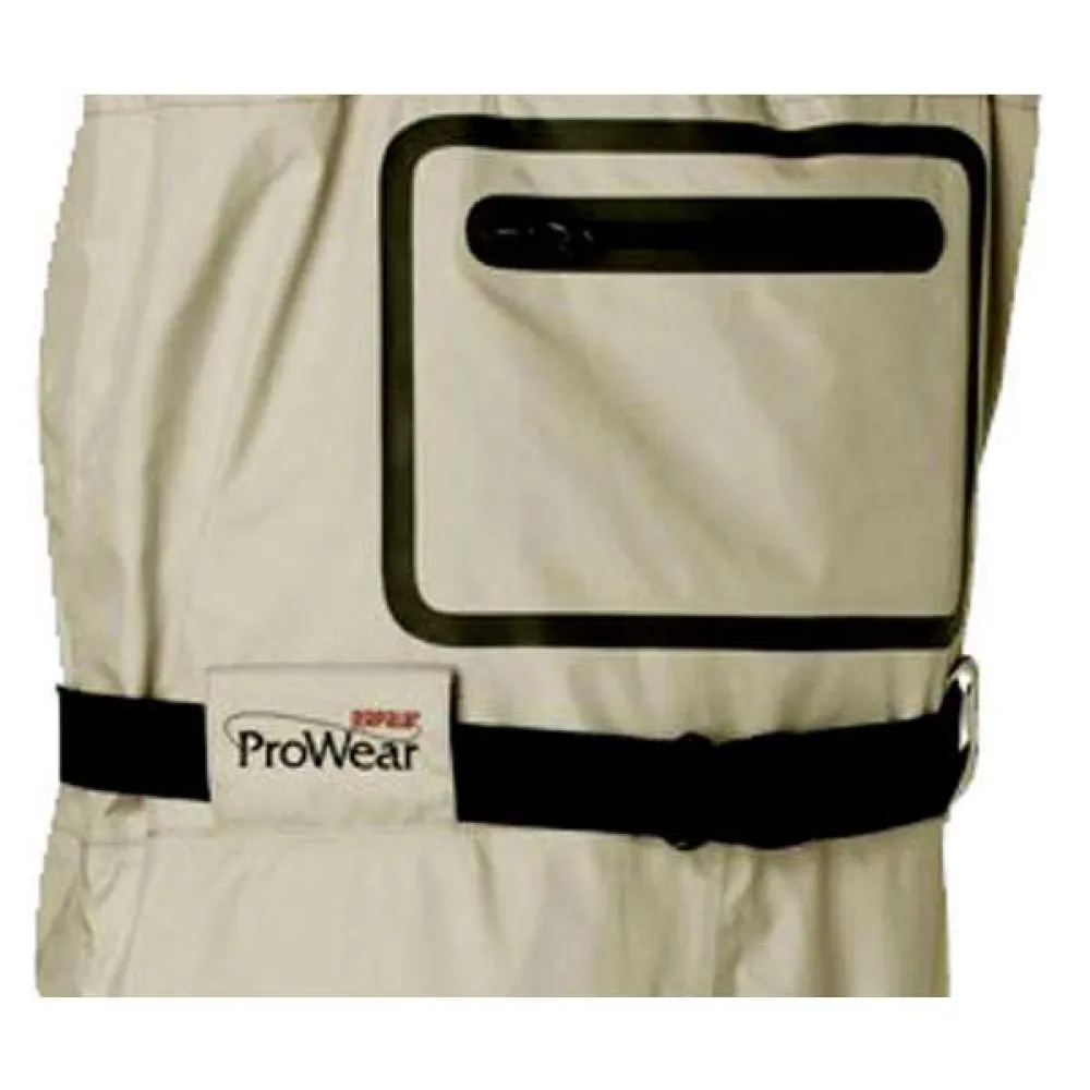 Abrasion resistant gravel guards at ankles to fit over boots. Internal flip out chest pocket. Welded front pocket with