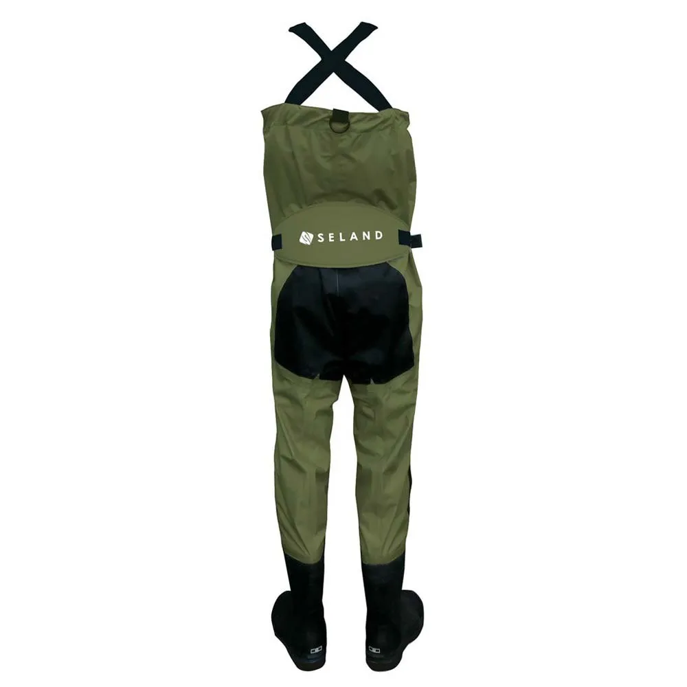 Breathable waders made of new breathable BREATH-TEX (BTX) 3-layer material (WPR 10000mm H2O- MVP 4000gr-m2-24hrs) with reinforcements on the seat and knees-shins in new 600D Oxford-PVC material (highly abrasion resistant and water repellent material).