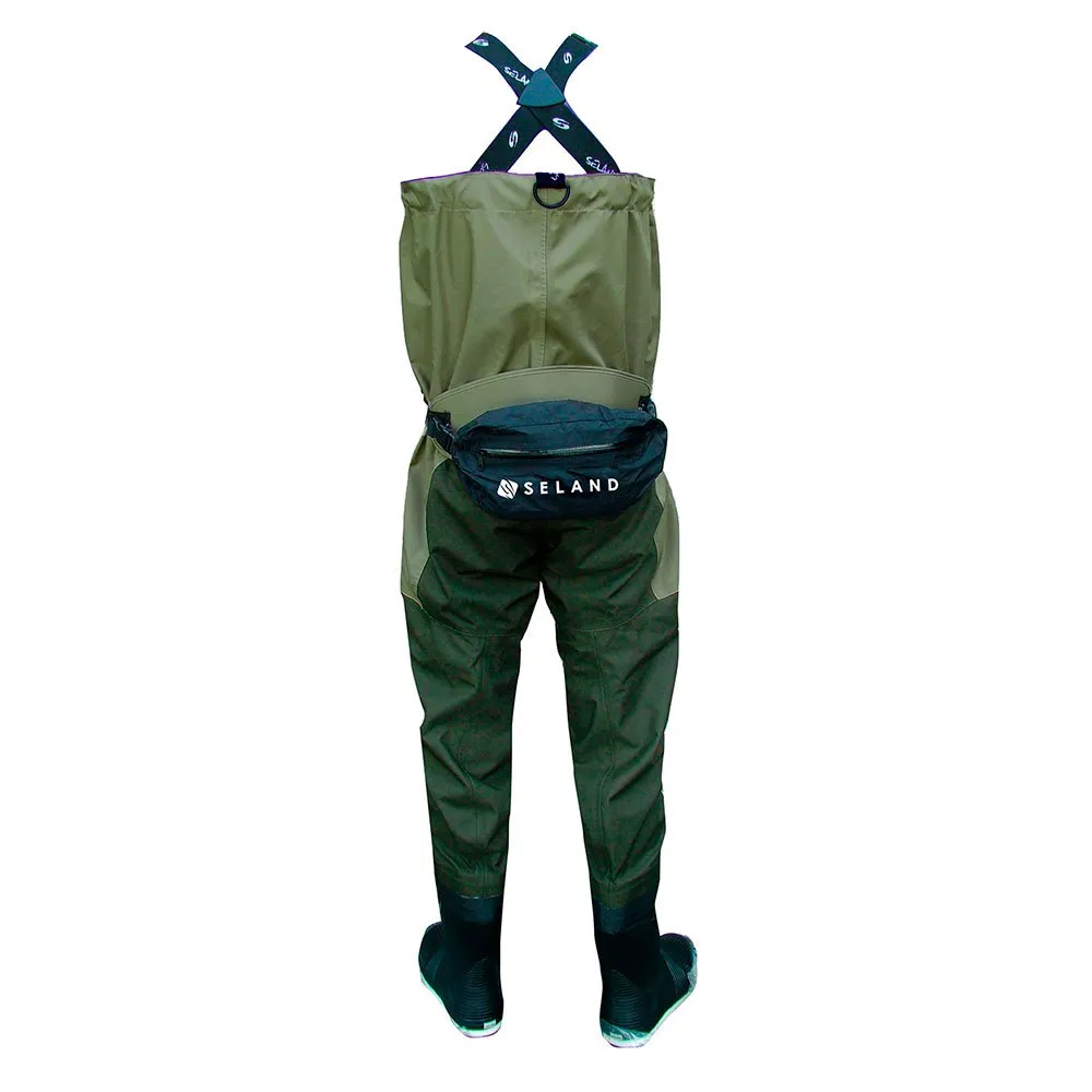 Waders made of breathable material with 3 layers on the upper part and 5 layers on the lower part.