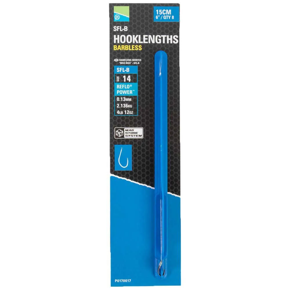 Each pack contains 8 hand tied rigs which are stored on the rig stick, hook size along with line diameter and breaking strain can be easily identified by the attached sticker.